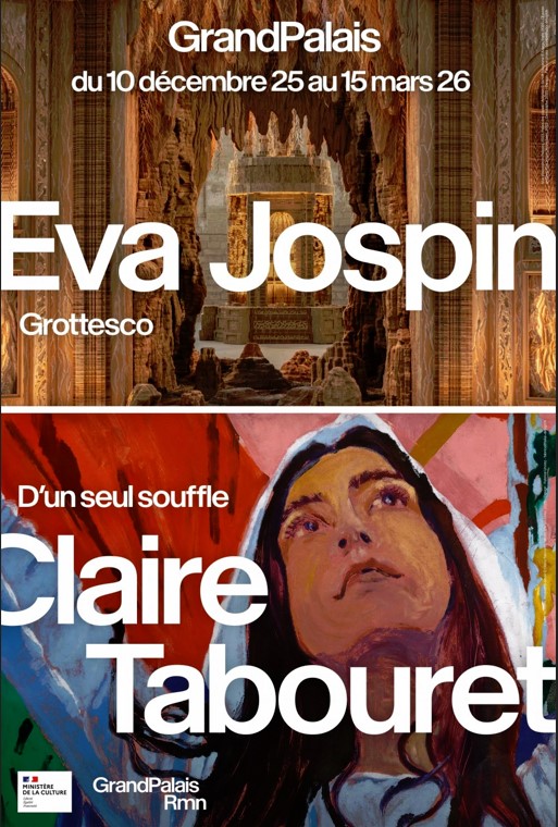 The Grand Palais invites artists Eva Jospin and Claire Tabouret to take over two galleries connected by a single entrance. On one side, Grottesco, a journey through forests, caves, and imaginary architecture; on the other, D’un seul souffle (In a Single Breath), or behind the scenes of a monumental project: the future contemporary stained-glass windows of Notre-Dame de Paris.